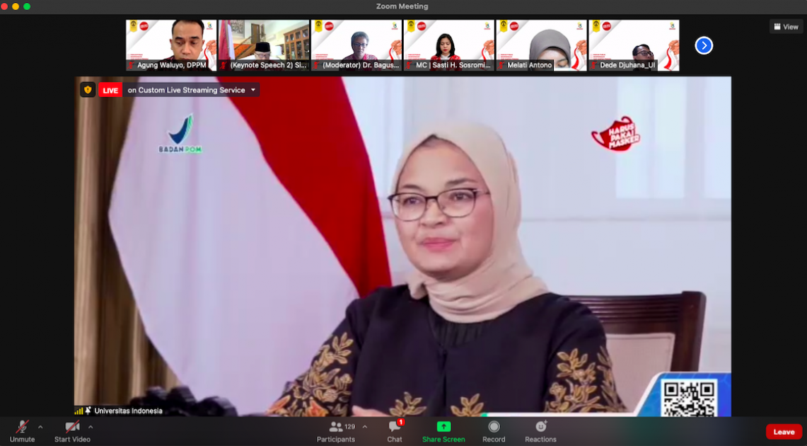Webinar pada hari ini dibuka oleh Rektor Universitas Indonesia, Ari Kuncoro. Selain Kepala Badan POM, kegiatan ini dihadiri oleh Menteri Pemuda dan Olahraga, Zainudin Zamali dan Ketua Harmoni Indonesia, Sidarto Danusubroto sebagai Keynote Speakers. Juga menghadirkan beberapa narasumber, yaitu Menteri Agama RI; Ketua Umum Kamar Dagang dan Industri (KADIN); Direktur Pembelajaran dan Kemahasiswaan Kementerian Pendidikan, Kebudayaan, Riset, dan Teknologi; serta Kepala Badan Pendidikan dan Pelatihan Keuangan. Kegiatan ini dihadiri oleh sekitar 1.000 peserta yang berasal dari kalangan kementerian/lembaga, pelaku usaha, lembaga swadaya masyarakat, hingga diplomat dan atlet, serta masyarakat umum.