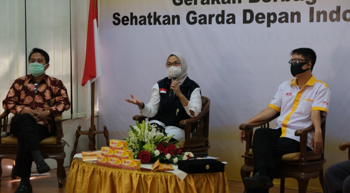 Gerakan Berbagi Sehatkan Garda Depan Indonesia ini merupakan gerakan pemberian dukungan produk obat tradisional dan Alat Pelindung Diri kepada satu juta pahlawan kemanusiaan Indonesia. Badan POM menyampaikan apresiasi terhadap peran aktif pelaku usaha atas inisiasinya dalam gerakan ini. Badan POM sangat mendukung dan mengapresiasi para tenaga kesehatan dan tenaga pendukung lainnya yang menjadi garda terdepan dalam upaya memerangi COVID-19.