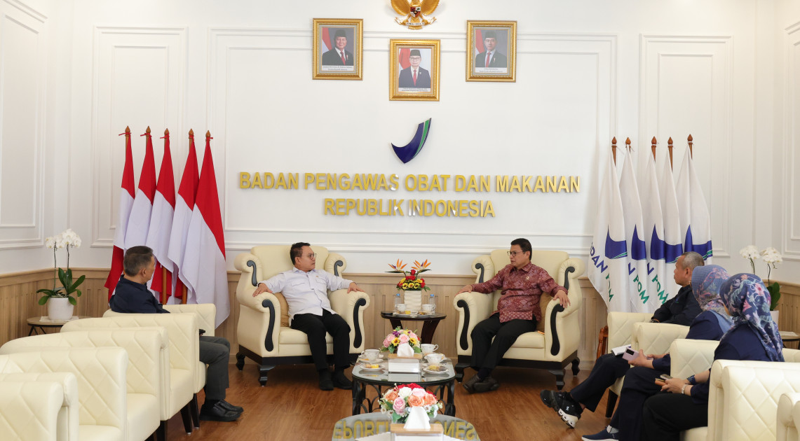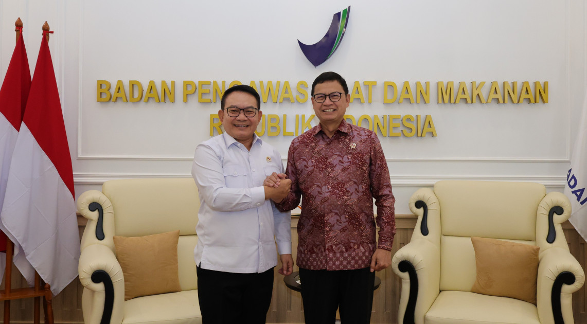 Jakarta – Kepala BPOM Taruna Ikrar menerima kunjungan Utusan Khusus Presiden Bidang Pertahanan Nasional, Jenderal TNI (Purn.) Prof. Dudung Abdurachman, di Kantor BPOM, Senin (23/6/2025). Pertemuan ini membahas kesiapan Indonesia dalam menghadapi ketidakpastian global, khususnya terkait ancaman perang dan ketahanan nasional di sektor kesehatan dan obat-obatan.