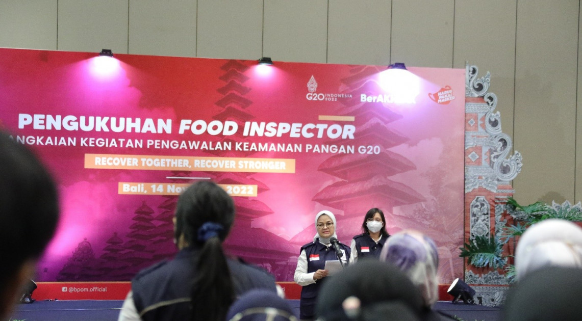 BPOM sudah mempersiapkan sebanyak 60 orang petugas Balai Besar POM di Denpasar dan Loka POM di Kabupaten Buleleng, serta 10 orang petugas pusat di setiap titik lokasi yang akan dilakukan pengawalan keamanan pangan KTT G20. Pengawalan keamanan pangan yang dilakukan meliputi sampling, pengujian, dan kitchen inspection pada 18 (delapan belas) hotel. Food Inspector yang terlibat sejak awal rangkaian G20 (Desember 2021 – November 2022) berjumlah 120 orang.