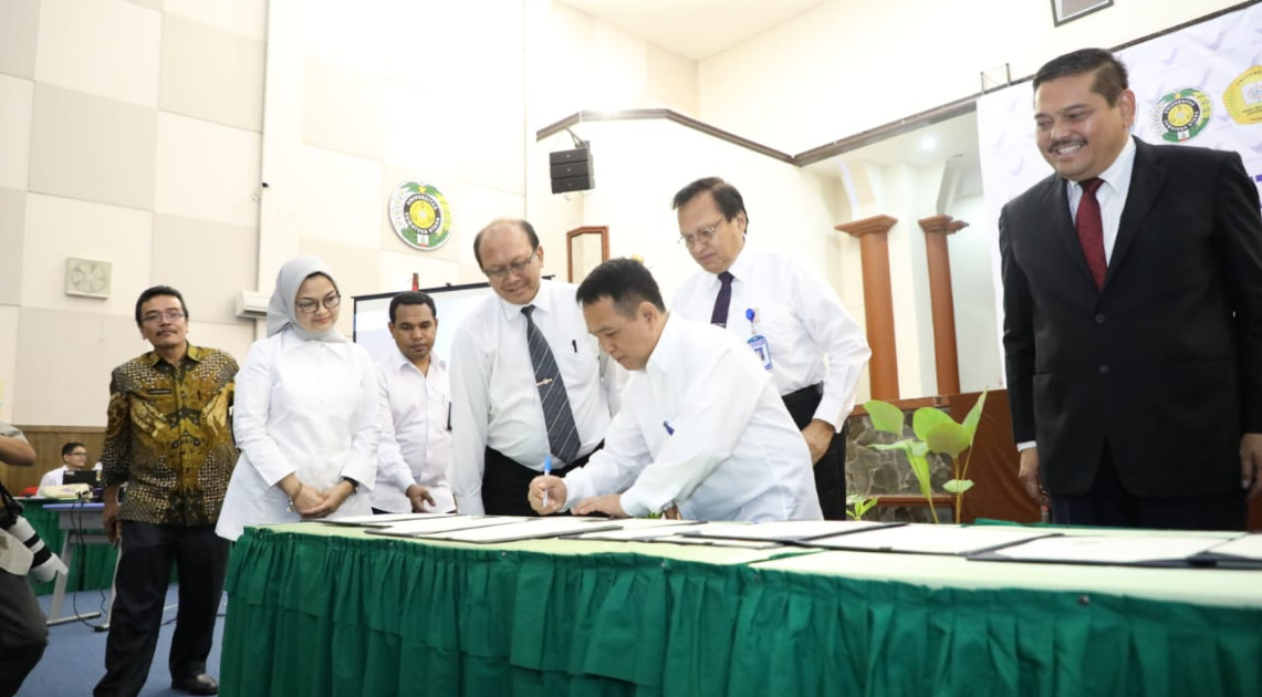 Medan - BPOM RI gandeng lima Pemerintah Kota/Kabupaten dan 4 Perguruan Tinggi di Sumatera Utara untuk mengoptimalkan pengawasan obat dan makanan di Sumatera Utara. Penandatanganan kerja sama diawali oleh Rektor Universitas Sumatera Utara (USU), Runtung Sitepu dengan Kepala BPOM RI, Penny K. Lukito, Kamis (27/12). BPOM ingin meningkatkan kompetensi sumber daya manusia (SDM) di bidang pendidikan, pelatihan, kursus, workshop, seminar, penelitian, publikasi ilmiah, serta penguatan pengawasan obat dan makanan. ”Saya yakin dengan sinergi ini, pengawasan obat dan makanan di Sumatera Utara akan semakin kuat,” ungkap optimis Kepala BPOM RI dalam sambutannya.