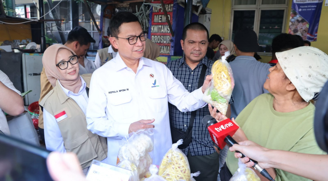 Jakarta – Kepala BPOM Taruna Ikrar melakukan sidak ke sejumlah pedagang yang menjajakan pangan berbuka puasa (takjil) di Bazar Takjil Ramadan, Bendungan Hilir, Jakarta pada Selasa (11/3/2025). Hasil uji sampel yang dilakukan BPOM melalui Balai Besar POM (BBPOM) di Jakarta tidak mengandung bahan berbahaya sehingga produk pangan yang dijual aman dikonsumsi masyarakat.