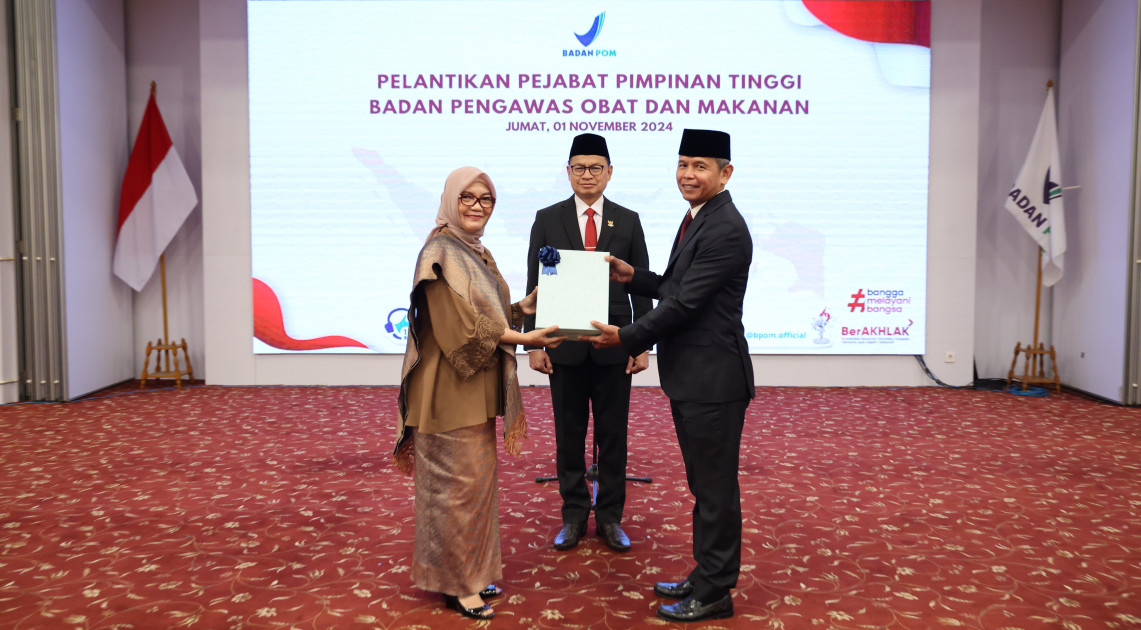 Jakarta – Kepala BPOM Taruna Ikrar melantik dan mengambil sumpah 4 Pejabat Pimpinan Tinggi Madya dan Pratama di lingkungan BPOM, Jumat (1/11/2024). Keempat pejabat yang dilantik dan diambil sumpah di Aula Bhinneka Tunggal Ika BPOM tersebut adalah Rita Mahyona sebagai Deputi Bidang Pengawasan Obat, Narkotika, Psikotropika, Prekursor, dan Zat Adiktif (Deputi 1), Brigjen Pol. Jayadi sebagai Sekretaris Utama, Brigjen Pol. Tubagus Ade Hidayat sebagai Deputi Bidang Penindakan (Deputi 4), dan Rizkal sebagai Direktur Intelijen Obat dan Makanan.
