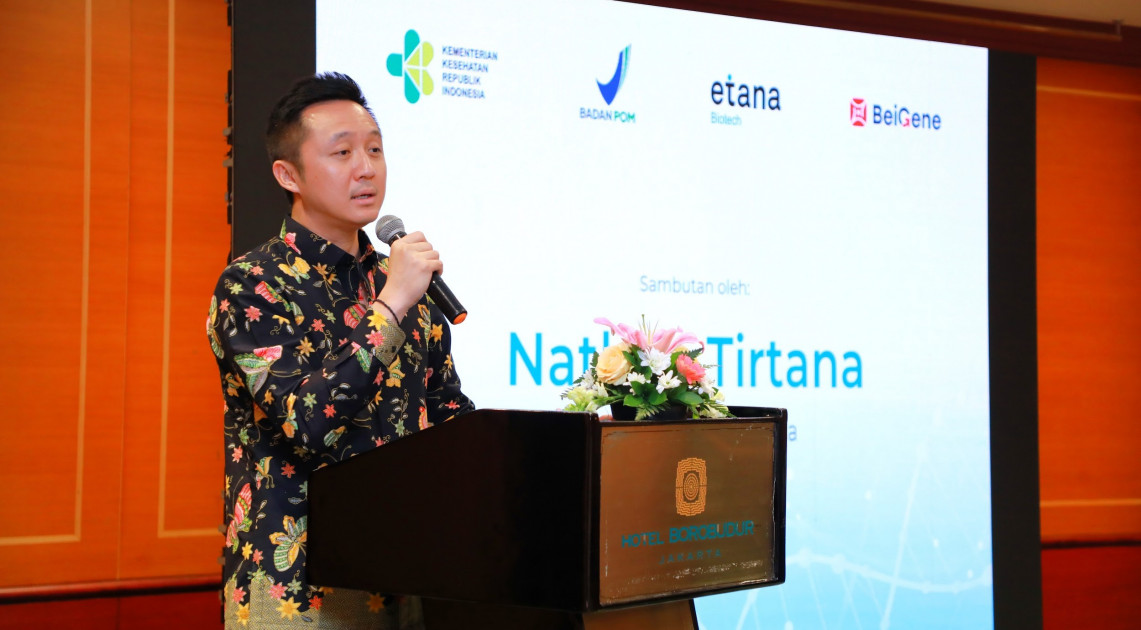 Jakarta - Kepala BPOM Taruna Ikrar menyerahkan izin edar untuk 2 produk baru terapi kanker di Indonesia, yaitu Etapidi dan Brukinsa pada Selasa (10/12/2024). Etapidi dan Brukinsa merupakan produk obat inovatif yang dikembangkan oleh PT Etana Biotechnologies Indonesia (Etana) dan pengembang pengobatan onkologi BeiGene untuk perawatan terapi kanker, khususnya kanker paru dan kanker esofagus. Surat persetujuan izin edar produk Etapidi dan Brukinsa diterima langsung oleh Presiden Direktur Etana Nathan Tirtana.