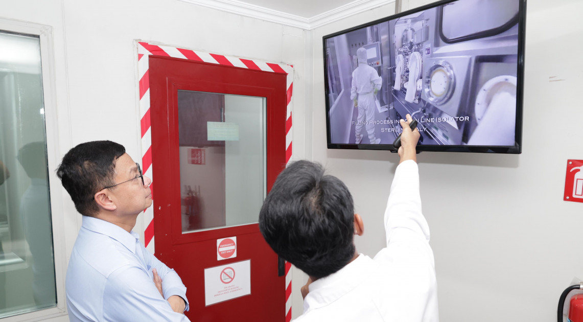 Di Sanbe Farma, Kepala BPOM meninjau ruangan produksi monoclonal antibody drug substance, ruangan pengolahan air murni, laboratorium quality control (QC), ruangan produksi large volume parenteralLVP, ruangan produksi oncology sterile, dan ruangan produksi oncology non-sterile. Setelah kunjungan dan diskusi, Taruna Ikrar juga berkesempatan melakukan tanya jawab dengan rekan media.