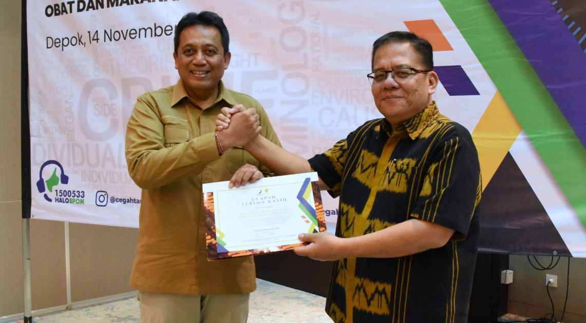 Melalui kegiatan ini, diharapkan dapat terbentuk kesepakatan kerja sama dalam rangka penyusunan program-program pencegahan kejahatan obat dan makanan yang holistik dan multiperspektif. Juga diharapkan dapat semakin memperkaya wawasan, baik bagi pihak internal BPOM, khususnya Direktorat Cegah Tangkal, maupun bagi Departemen Kriminologi Universitas Indonesia, sehingga tercipta sinergisme mutual di antara kedua pihak. Dengan program pencegahan kejahatan obat dan makanan yang baik dan komprehensif, diharapkan dapat memberikan perlindungan kepada masyarakat yang maksimal, terutama dari obat dan makanan mengandung bahan berbahaya/ilegal yang berisiko terhadap kesehatan masyarakat. (Direktorat Cegah Tangkal)