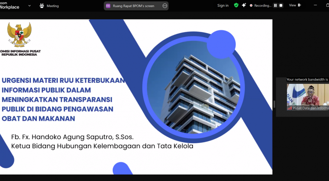 Dalam sambutannya yang disampaikan secara online, Kepala BPOM Taruna Ikrar menegaskan pentingnya keterbukaan informasi sebagai pilar pengawasan obat dan makanan yang efektif. “Transparansi bukan sekadar kewajiban hukum, tetapi juga bentuk akuntabilitas kami kepada publik,” ujarnya.