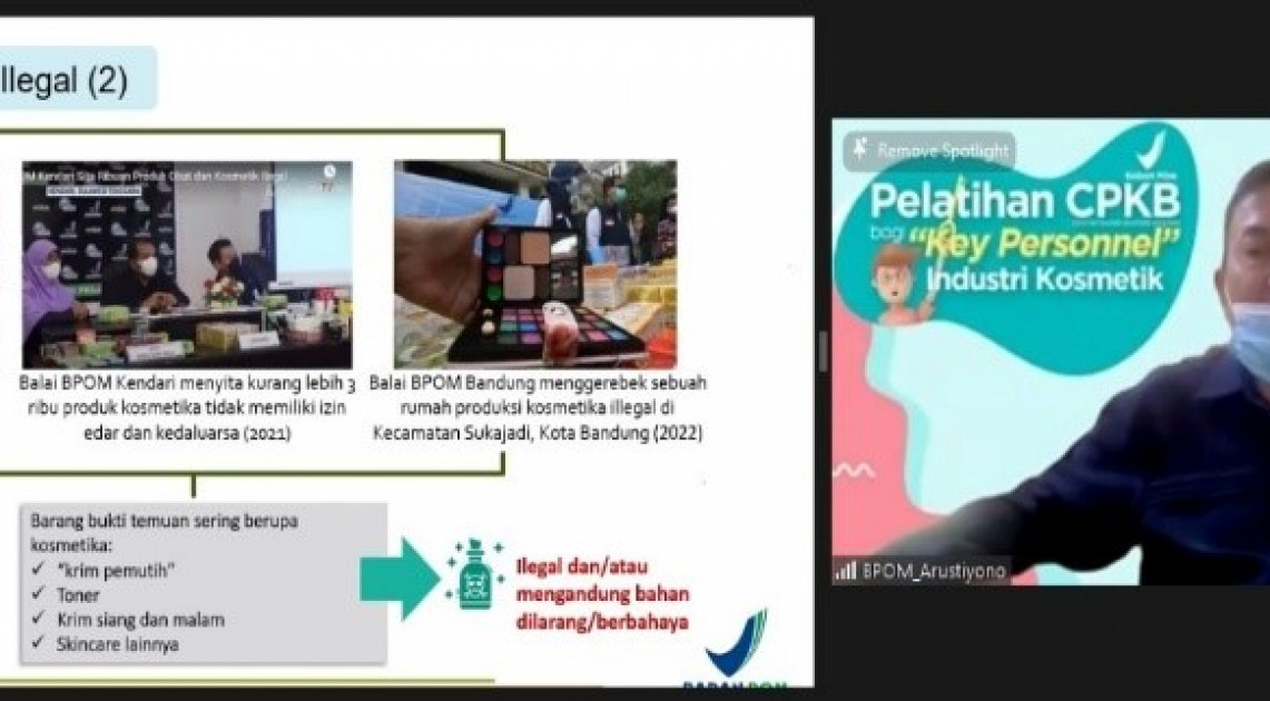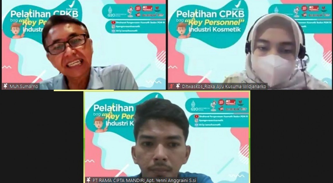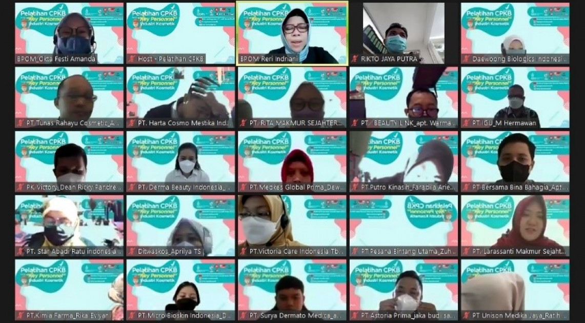 Jakarta – Berdasarkan hasil pengawasan pre-market oleh Badan POM melalui audit sertifikasi CPKB pada industri kosmetik, masih dijumpai adanya key personnel pada industri kosmetik yang belum pernah mengikuti pelatihan CPKB. Sebagian besar key personnel tersebut hanya membaca dan memahami CPKB secara mandiri dari Pedoman CPKB. Pembelajaran terhadap CPKB memang memungkinkan untuk dilakukan secara mandiri oleh personil pada industri kosmetik, namun tingkat pemahaman tiap-tiap personil tersebut terhadap CPKB bisa jadi tidak seragam. Menyikapi kebutuhan tersebut, Badan POM memfasilitasi kegiatan Pelatihan CPKB bagi Key Personnel Industri Kosmetik pada tanggal 1 – 3 Agustus 2022 secara daring.