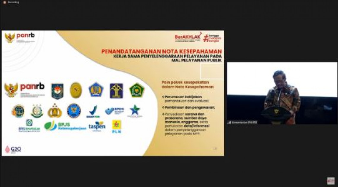 Penandatanganan dilakukan secara digital dan disaksikan langsung oleh Wakil Presiden Republik Indonesia, K.H. Ma''ruf Amin di Kantor Kementerian PANRB, Jakarta. Dalam sambutannya, Wakil Presiden menekankan agar implementasi dari penandatanganan ini harus benar-benar diwujudkan. "Saya meminta penandatanganan nota kesepahaman ini tidak hanya simbolis semata, tetapi diwujudkan dengan mengesampingkan ego sektoral guna tercapainya percepatan penyelenggaraan MPP yang berkualitas", imbaunya.