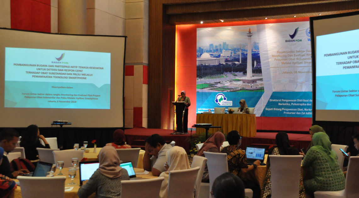 Kamis (8/11), BPOM RI menyelenggarakan Forum Lintas Sektor dalam rangka Monitoring dan Evaluasi Pilot Project Pelaporan Obat Substandar dan Palsu Melalui Aplikasi Smartphone di Jakarta. Acara ini dibuka oleh Plt. Deputi Bidang Pengawasan Obat, Narkotika, Psikotropika, Prekursor dan Zat Adiktif, Reri Indriani. Kegiatan yang juga dihadiri oleh WHO Headquarter Representative, Diana Lee ini bertujuan menyosialisasikan hasil pilot project kepada lintas sektor terkait serta tenaga kesehatan dari rumah sakit dan puskesmas sebagai pengguna langsung dari aplikasi tersebut.