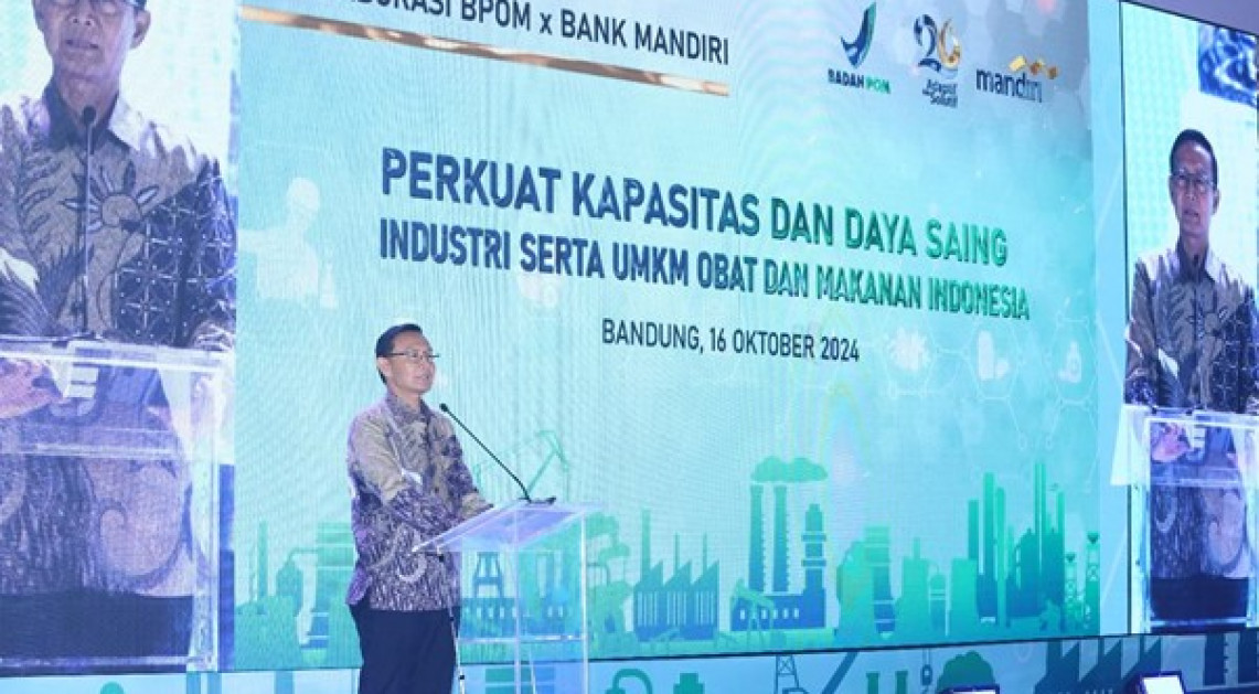 Bandung – Rabu (16/10/2024), BPOM berkolaborasi dengan PT Bank Mandiri Persero (Tbk.) menggelar forum bisnis dengan tema Perkuat Kapasitas dan Daya Saing Industri serta UMKM Obat dan Makanan Indonesia. Forum bisnis ini diselenggarakan dengan tujuan meningkatkan kemitraan lintas sektor untuk memperkuat pemberdayaan pelaku usaha, khususnya usaha mikro, kecil, dan menengah (UMKM) obat dan makanan. Sekaligus meningkatkan literasi bisnis untuk pengembangan sektor usaha obat dan makanan dalam mendukung pertumbuhan ekonomi nasional.