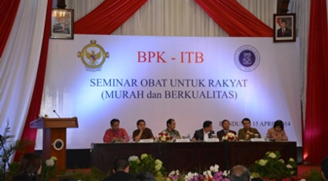 “Obat merupakan salah satu komoditi perdagangan yang dapat menentukan kelangsungan hidup orang banyak. Untuk itu pengawasan obat dilakukan mulai dari produksi, distribusi, sampai penggunaannya di masyarakat”. Demikian disampaikan Wakil Rektor ITB Bidang Riset dan Teknologi, Wawan Gunawan dalam acara seminar “Obat untuk Rakyat (Murah dan Berkualitas)”, yang diselenggarakan oleh BPK dan ITB pada 15 april 2014 di Aula Barat Institut Teknologi (ITB) Bandung.