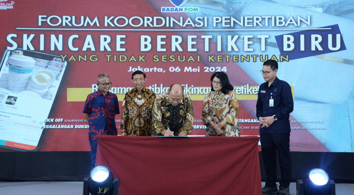 Dalam kegiatan ini, Plt. Kepala BPOM sekaligus melakukan Kick-Off Kampanye Nasional “Waspada Skincare Beretiket Biru yang Tidak Sesuai Ketentuan”. Kemudian sebagai bentuk kolaborasi dalam penertiban peredaran skincare beretiket biru yang tidak sesuai ketentuan, BPOM bersama Ikatan Dokter Indonesia (IDI), Ikatan Apoteker Indonesia (IAI), dan Perhimpunan Dokter Spesialis Kulit dan Kelamin Indonesia (Perdoski) menandatangani komitmen kerja sama. Komitmen tersebut berisi pernyataan bahwa asosiasi profesi ikut berpartisipasi aktif dalam menindaklanjuti hasil pengawasan skincare beretiket biru yang tidak sesuai ketentuan, termasuk menyukseskan kampanye yang dimulai pada momen tersebut.
