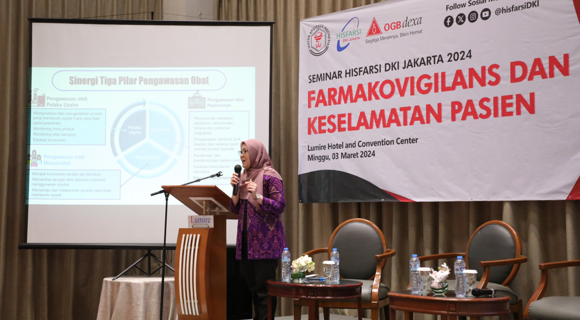 Jakarta – “Jangan takut melaporkan adanya medication error atau adanya kejadian efek samping obat.” Demikian imbau Pelaksana Tugas (Plt.) Kepala BPOM RI, L Rizka Andalusia kepada peserta Seminar Himpunan Senat Farmasi Rumah Sakit (HISFARSI) DKI Jakarta pada Minggu (03/03/2024). “Pelaporan akan ditindaklanjuti dengan solusi yang membangun. Pastikan pelaporannya lengkap. Teman-teman juga dapat memberikan masukan terkait pelaporan yang mudah,” ujarnya lebih lanjut.