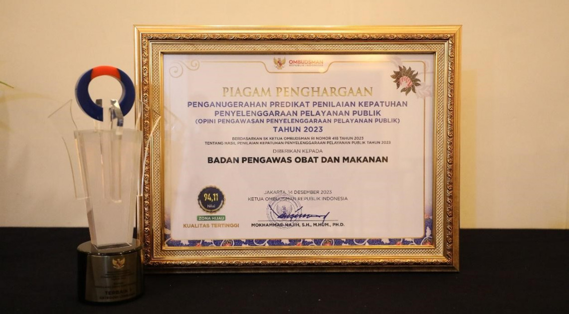 Sebelumnya, BPOM telah memperoleh Peringkat Pertama Predikat Kepatuhan Standar Pelayanan Publik Tingkat Lembaga Pemerintah (Zonasi Hijau Kategori A Kualitas Tertinggi) selama dua tahun berturut-turut pada tahun 2021 dan 2022. BPOM berkomitmen akan senantiasa memberikan pelayanan publik yang prima guna mengawal jaminan keamanan, khasiat, dan mutu obat dan makanan yang beredar di Indonesia.