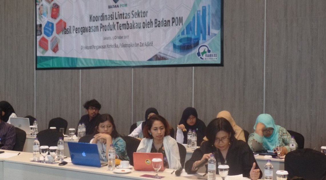 Pada tanggal 5 Oktober 2017 telah dilaksanakan Koordinasi Lintas Sektor terkait Hasil Pengawasan Pengawasan Produk Tembakau (Rokok) di Hotel Grand Mercure Jakarta yang dihadiri oleh Kementerian Kesehatan (Ditjen P2PTM, Ditjen Promosi Kesehatan & Pemberdayaan Masyarakat dan Biro Hukor), Kemenkoinfo, Ditjen Bea dan Cukai Kemenkeu, Ditjen HAKI Kemenkumham, Kemenko PMK, Kementerian PP dan PA, Dit Impor Kemendag, Kementerian Perindustrian, Pemda DKI, Komisi Penyiaran Indonesia, Ketua Lembaga Sensor Film, WHO, Badan POM (PPOM, PPOMN, Biro Hukmans, Ditwas Napza), dan Lembaga Swadaya Masyarakat antara lain: TCSC – IAKMI, MTCC (Muhammadiyah Tobacco Control Center), FAKTA dan Lentera Anak Indonesia.