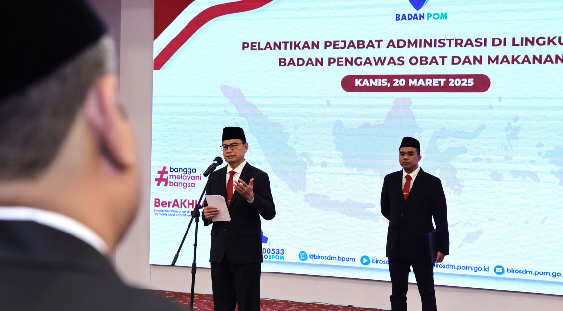 Jakarta – Kepala BPOM Taruna Ikrar melantik dan mengambil sumpah jabatan 20 pejabat administrator dan 4 pejabat pengawas di lingkungan BPOM pada Kamis (20/3/2025). Pejabat yang dilantik terdiri dari 17 kepala Balai POM, 3 kepala Loka POM, 3 kepala bagian tata usaha Balai Besar POM, dan 1 kepala subbagian tata usaha BPOM tingkat pusat.