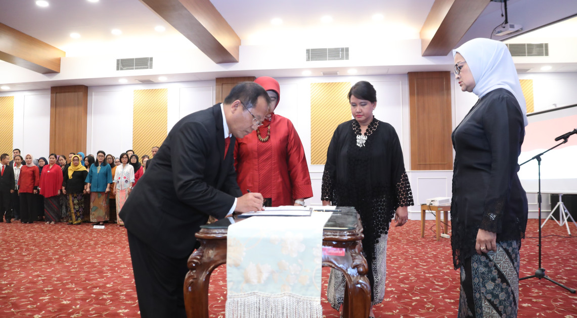 Jakarta - Kepala Badan POM RI, Penny K. Lukito melantik Agus Budijarto sebagai Deputi Bidang Penindakan menggantikan Hendri Siswadi yang telah memasuki masa purnabakti awal tahun ini. Pelantikan berlangsung di Kantor Badan POM, Jakarta, Rabu (14/08). Agus Budijarto dilantik berdasarkan Keputusan Presiden (Keppres) Nomor 84/TPA Tahun 2019 tentang Pemberhentian dan Pengangkatan Jabatan Tinggi Madya di Lingkungan Badan POM.