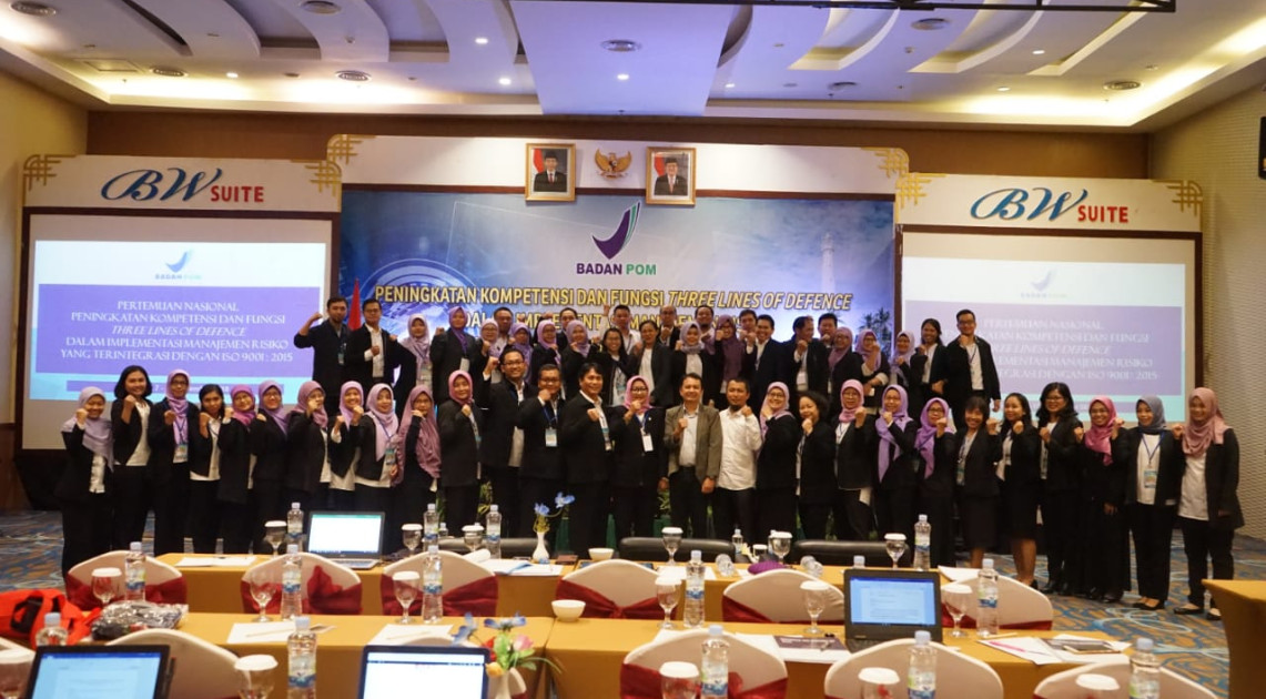Untuk menunjang dan meningkatkan implementasi manajemen risiko yang dilakukan, BPOM melalui Inspektorat Utama menyelenggarakan kegiatan pelatihan peningkatan kompetensi dan fungsi three lines of defence dalam implementasi manajemen risiko yang terintegrasi dengan ISO 9001:2015. Pelatihan diselenggarakan di Belitung dalam bentuk pertemuan nasional dengan mengumpulkan seluruh elemen MR, AI, serta APIP yang bertanggungjawab terhadap manajemen risiko di satuan kerja masing masing. Kegiatan ini berjalan selama 4 hari yaitu 7-10 November 2018 yang dikemas dalam beberapa agenda antara lain pemaparan materi tentang manajemen risiko, evaluasi pemantauan manajemen risiko, fasilitasi Desk Manajemen Risiko, dan praktik lapang proses Manajemen Risiko.