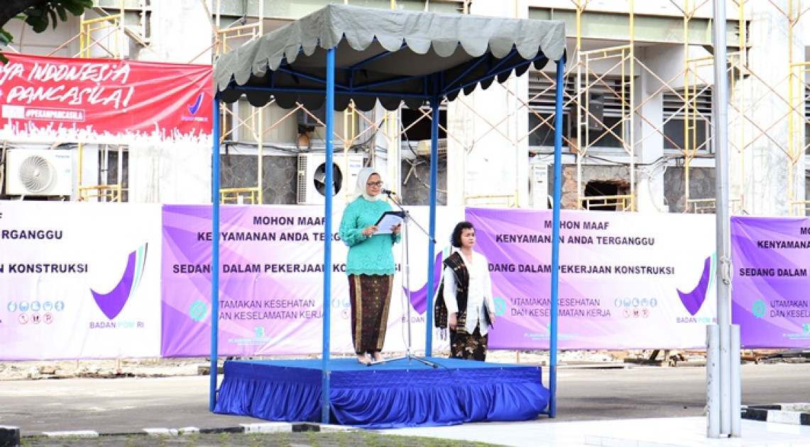 Meski ditetapkan sebagai Hari Libur Nasional, tak menyurutkan semangat seluruh pimpinan dan pegawai Badan POM mengikuti upacara sejak pagi hari di Lapangan Badan POM dengan Kepala Badan POM RI, Penny K. Lukito sebagai Inspektur Upacara dan Susan Gracia sebagai komandan Upacara (01/06).