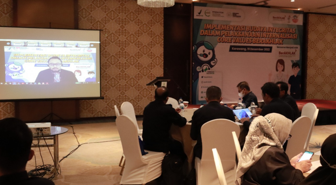 Jakarta - BPOM terus memperkuat komitmennya dalam menjalankan budaya BerAKHLAK. Senin (19/12/2022), BPOM mengadakan kegiatan “Implementasi Budaya Integritas dalam Pelaksanaan Internalisasi Core Value BerAKHLAK” yang diselenggarakan oleh Pusat Pengembangan Sumber Daya Manusia Pengawasan Obat dan Makanan (PPSDM POM). Kegiatan menyasar para pemimpin perubahan serta para agen perubahan (Agent of Change/AOC) untuk bisa menjadi role model di unit kerjanya masing-masing.