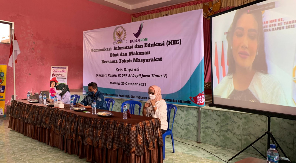 KIE Obat dan Makanan di Kabupaten Malang dihadiri kurang lebih 500 peserta yang berasal dari masyarakat sekitar. Kegiatan KIE diselenggarakan pada Rabu, 20 Oktober 2021 berlokasi di Kecamatan Wajak bersama Direktur PMPU OT SK Kos, Asih Liza Restanti selaku perwakilan BPOM. Sedangkan KIE pada Kamis, 21 Oktober 2021 di Kecamatan Poncokusumo, BPOM diwakili oleh Koordinator Kelompok Substansi Pemberdayaan Usaha Mikro Kecil dan Menengah Kosmetik, Fadjar Aju Tofiana. Kegiatan selama 2 hari ini didukung oleh anggota Komisi IX DPR RI, Ibu Kris Dayanti selaku Mitra BPOM RI dan Tokoh Masyarakat Jawa Timur, sekaligus menjadi Narasumber yang hadir melalui online.