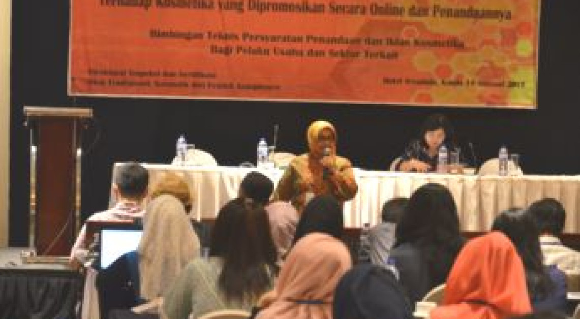 Kegiatan yang diikuti oleh 62 perusahaan kosmetik, 6 pelaku e-commerce, 3 stasiun TV, serta perwakilan dari asosiasi perusahaan kosmetik dan asosiasi e-commerce menghadirkan narasumber yang berkompeten yaitu Direktur Inspeksi dan Sertifikasi Obat Tradisional, Kosmetik dan Produk Komplemen, Kepala Sub Dit. Penyidikan dan Penindakan Kominfo, Perwakilan asosiasi e-commerce Indonesia, Kepala Sub Dit. Inspeksi Produk II, serta Kepala Seksi Pengawasan Penandaan dan Promosi Kosmetik.