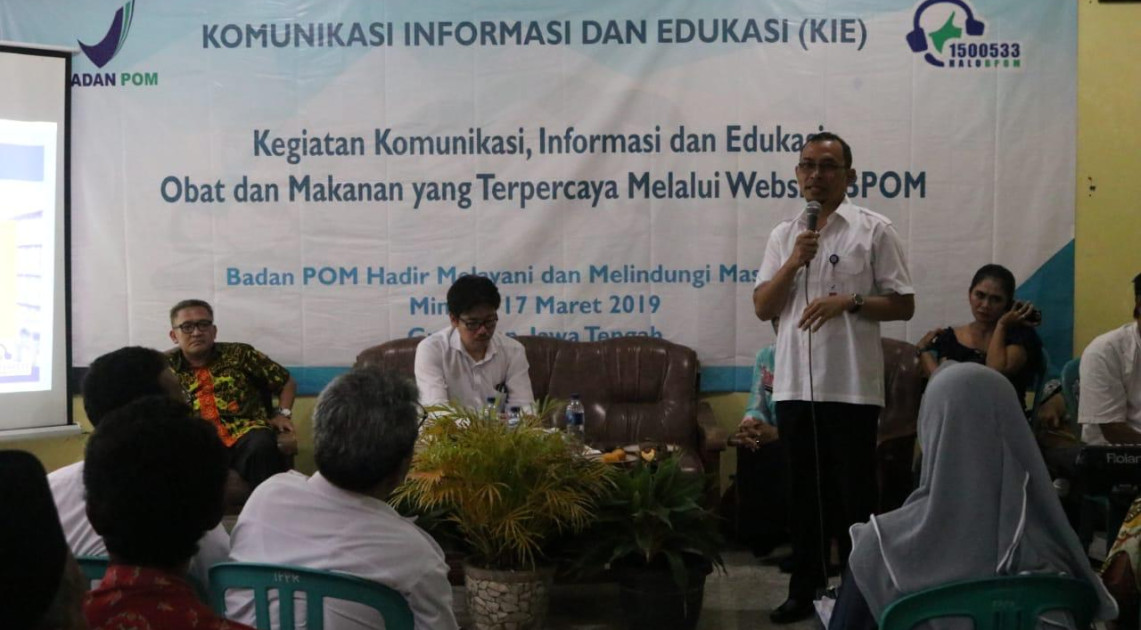 Dalam upayanya mencerdaskan masyarakat Kabupaten Grobogan menjadi konsumen yang cerdas, BPOM melaksanakan kegiatan Komunikasi, Informasi dan Edukasi bertema Obat dan Makanan yang terpercaya Melalui Website BPOM. Kegiatan KIE yng diselenggarakan pada Minggu, 17 Maret 2019 bertempat di Gedung PWRI Kec. Geyer, Kab. Grobogan mengundang 200 masyarakat setempat. Acara dibuka oleh perwakilan Dinas Kesehatan setempat, Ni Putu Sri Rahayu. Sebagai pembicara dalam acara tersebut, Bapak Sugeng Prasetyo selaku tokoh masyarakat di daerah setempat, menyampaikan informasi terkait fungsi-fungsi dalam pemerintahan. Diharapkan setiap ilmu yang diberikan oleh narsumber dapat diterapkan dalam keseharian warga Geyer.