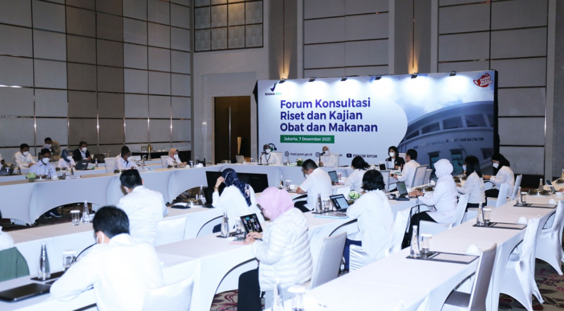 Forum Konsultasi Riset dan Kajian Obat dan Makanan hari ini membahas rencana riset dan kajian yang akan dilakukan di tahun 2022 agar kajian yang dihasilkan nantinya tepat arah dan tepat guna. Acara ini dibuka dan dipimpin langsung oleh Kepala Badan POM yang dihadiri oleh Pejabat Pimpinan Tinggi Madya, serta perwakilan dari unit-unit pusat di lingkungan Badan POM dan Balai Besar/Balai/Loka POM di seluruh Indonesia secara online dan offline.