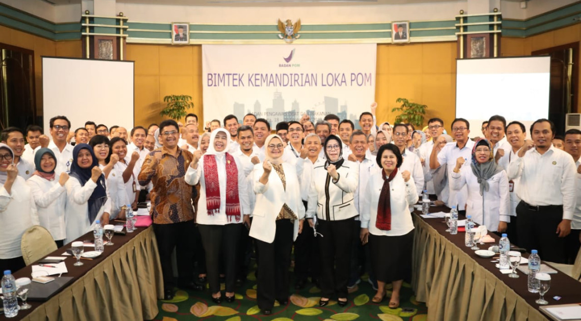 Jakarta - Besarnya tuntutan dan tanggung jawab sebagai satuan kerja (satker) mandiri serta kesiapan perangkat yang ada di Loka POM, menjadi latar belakang diselenggarakannya Bimbingan Teknis (Bimtek) Kemandirian Loka POM yang dibuka langsung oleh Kepala Badan POM RI, Penny K. Lukito, Rabu (18/09). Dalam laporannya, Plt. Sekretaris Utama, Reri Indriani menyampaikan bahwa Bimtek Kemandirian Loka POM ini dilaksanakan pada tanggal 18-20 September 2019 di Jakarta. “Bimtek dihadiri oleh Kepala dan pejabat struktural dari 40 Loka POM di seluruh Indonesia serta perwakilan unit kerja di Badan POM diantaranya Inspektorat Utama, Biro Umum dan Sumber Daya Manusia, Biro Perencanaan dan Keuangan, serta Unit Layanan Pengadaan,” ujarnya.