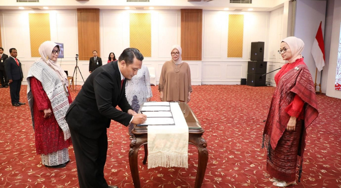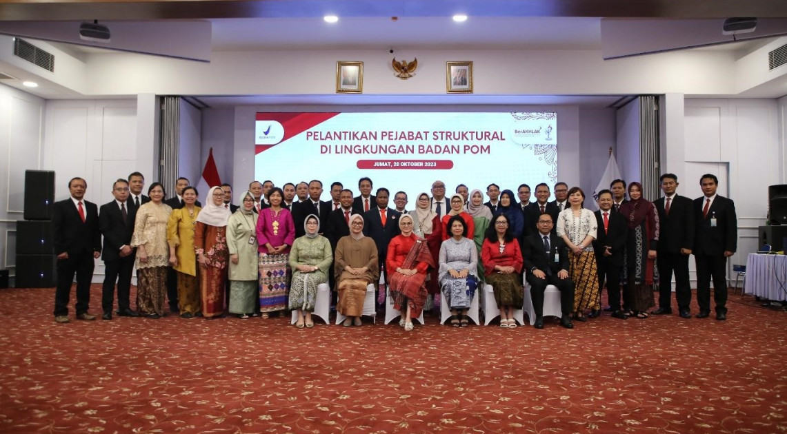 Jakarta – Kepala BPOM RI, Penny K Lukito melantik dan mengambil sumpah jabatan 14 pejabat struktural yang terdiri atas 2 Direktur BPOM, 8 Kepala Balai POM, dan 4 Kepala Loka POM di Kantor BPOM, Jakarta, Jumat (20/10/2023). Pelantikan kali ini terasa berbeda karena didominasi generasi muda yang akan menahkodai unit pelaksana teknis (UPT) BPOM di berbagai daerah.
