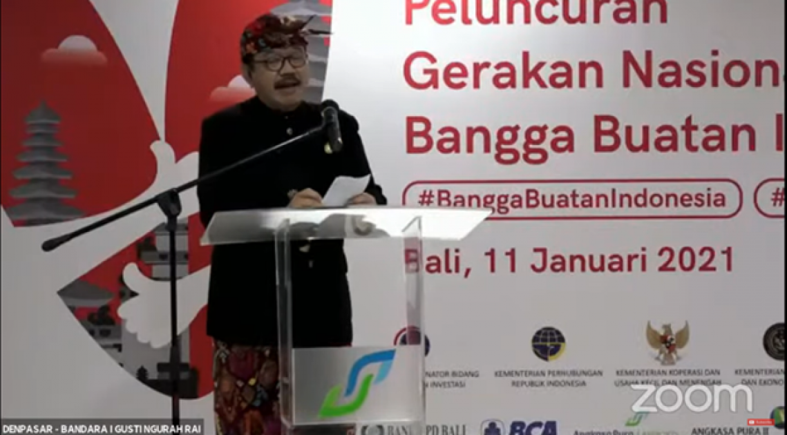 Jakarta, Bali, Yogya - Badan POM menghadiri Peluncuran Gerakan Nasional Bangga Buatan Indonesia (GN-BBI) 2021 yang diselenggarakan secara daring via zoom dan luring di Jakarta, Bali, dan Yogya, Senin (11/01). Gerakan ini bertujuan mempercepat siklus ekonomi lokal, memperbaiki daya beli masyarakat, mendorong kebangkitan ekonomi pasca pandemi, meningkatkan rasa bangga produk Indonesia, dan memperkuat kelangsungan Usaha Mikro, Kecil, dan Menengah (UMKM).