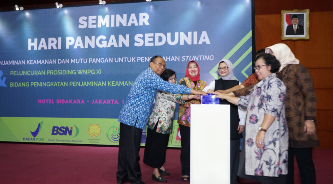 Peluncuran Buku Prosiding dilakukan secara simbolis dengan penekanan bel oleh Kepala BPOM, didampingi oleh Plt. Deputi Bidang Pengawasan Pangan Olahan; Vice President Codex sekaligus Tim Perumus WNPG XI Bidang 3, Purwiyatno Hariyadi; Asisten Deputi Ketahanan Gizi, Kesehatan Ibu dan Anak dan Kesehatan Lingkungan Kementerian Koordinator Bidang Pembangunan Manusia dan Kebudayaan, Meida Octarina; perwakilan dari Lembaga Ilmu Pengetahuan Indonesia (LIPI), Badan Standardisasi Nasional (BSN), dan Badan Perencanaan Pembangunan Nasional (Bappenas).