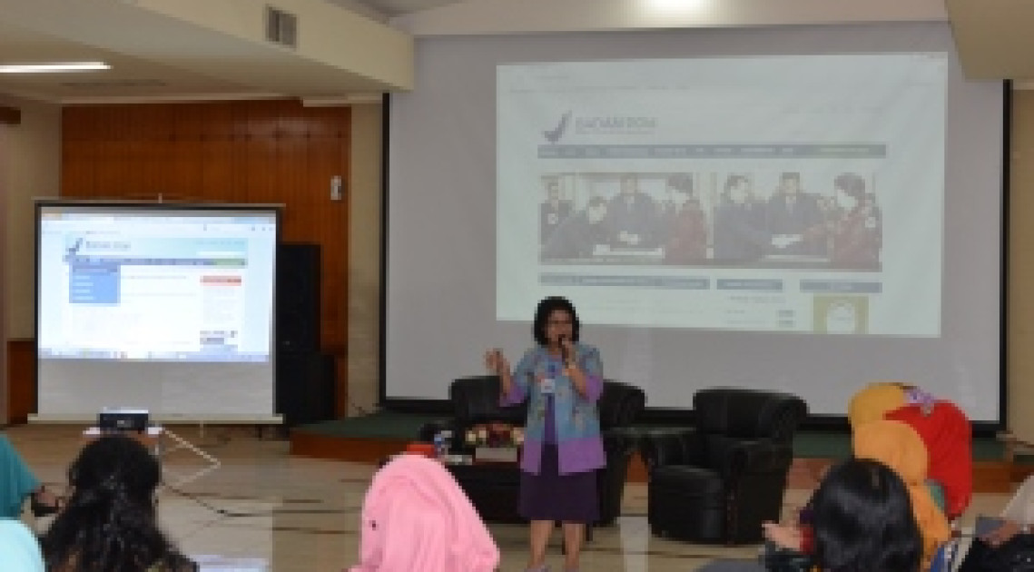 Dra. Rita Endang, Apt., M.Kes, Kepala Bidang Teknologi Informasi - Pusat Informasi Obat dan Makanan Badan POM berkesempatan menyampaikan materi tentang cara membuka website Badan POM dan cara mencari informasi tentang Obat dan Makanan secara online.