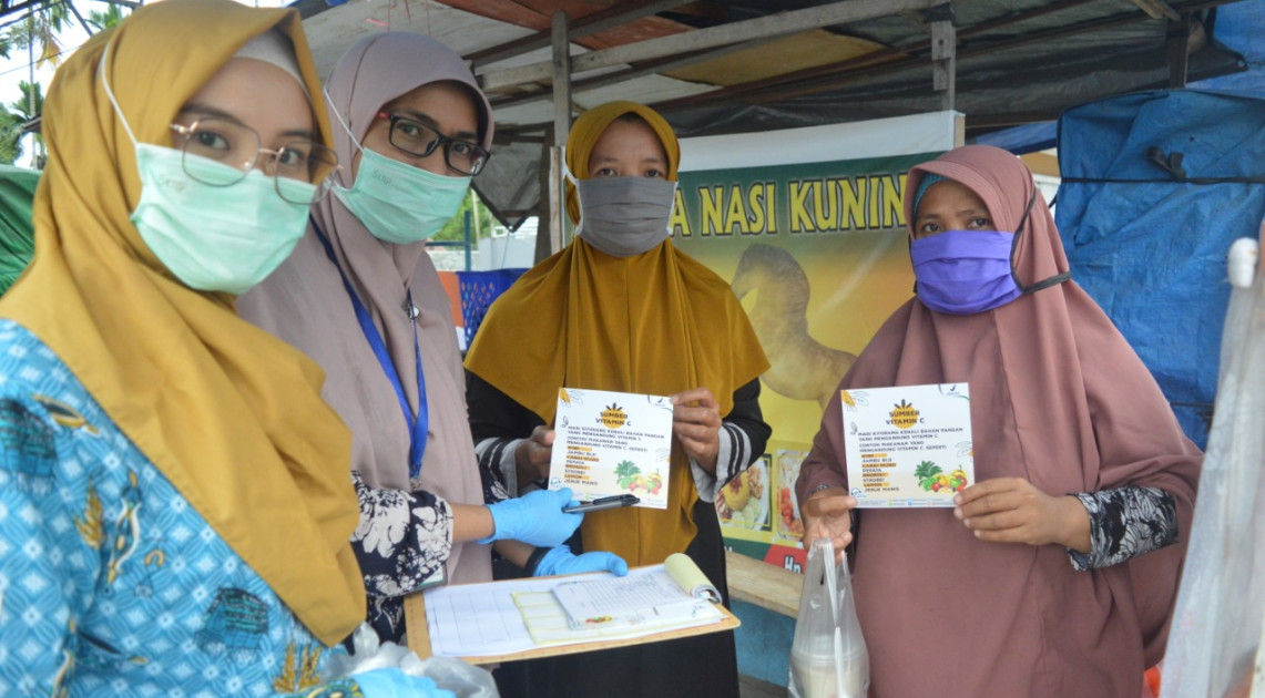 Pelaksanaan Intensifikasi Pangan di saat pandemi Covid-19 dilakukan dengan memperhatikan protokol kesehatan, yaitu dengan menggunakan masker, sarung tangan dan pembatasan jarak fisik (physical distancing). Bersamaan dengan sampling, petugas memberikan edukasi tips pencegahan penularan Covid-19 melalui brosur kepada para pedagang takjil. Dalam brosur ini terdapat tips cara berjualan selama pandemi dan mengenali beberapa sumber pangan yang mengandung vitamin C.