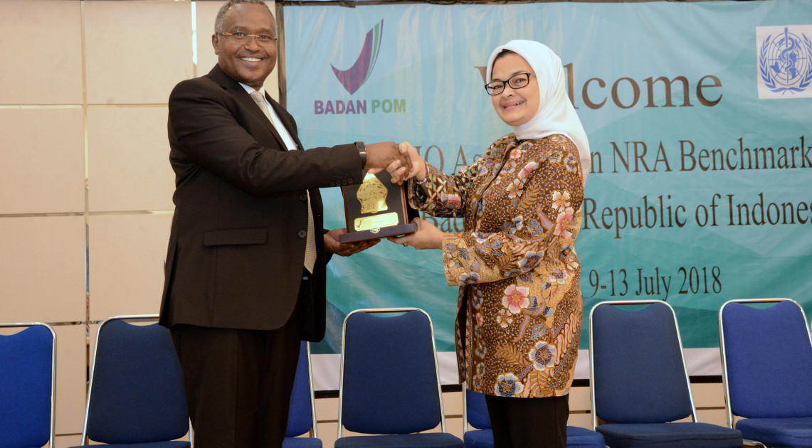 Indonesia telah dua kali dinilai oleh WHO pada tahun 2005 dan 2012. Pada kedua penilaian tersebut BPOM dinyatakan sebagai NRA yang fungsional, dengan kata lain BPOM dinilai memiliki sistem yang baik untuk melaksanakan pengawasan. Untuk memastikan kontinuitas pengawasan regulasi yang tepat perlu dilakukan re-benchmark sehingga keberhasilan pengawasan regulasi vaksin dan obat-obatan dan terus berlanjut. Pada 9-13 Juli 2018, kembali dilakukan WHO-NRA benchmarking terhadap BPOM. Pembukaan WHO-NRA benchmarking dihadiri para pimpinan pejabat tinggi BPOM serta 17 anggota WHO team. WHO team dipimpin seorang assessor dari Swiss yang bernama oleh Hiiti Sillo.