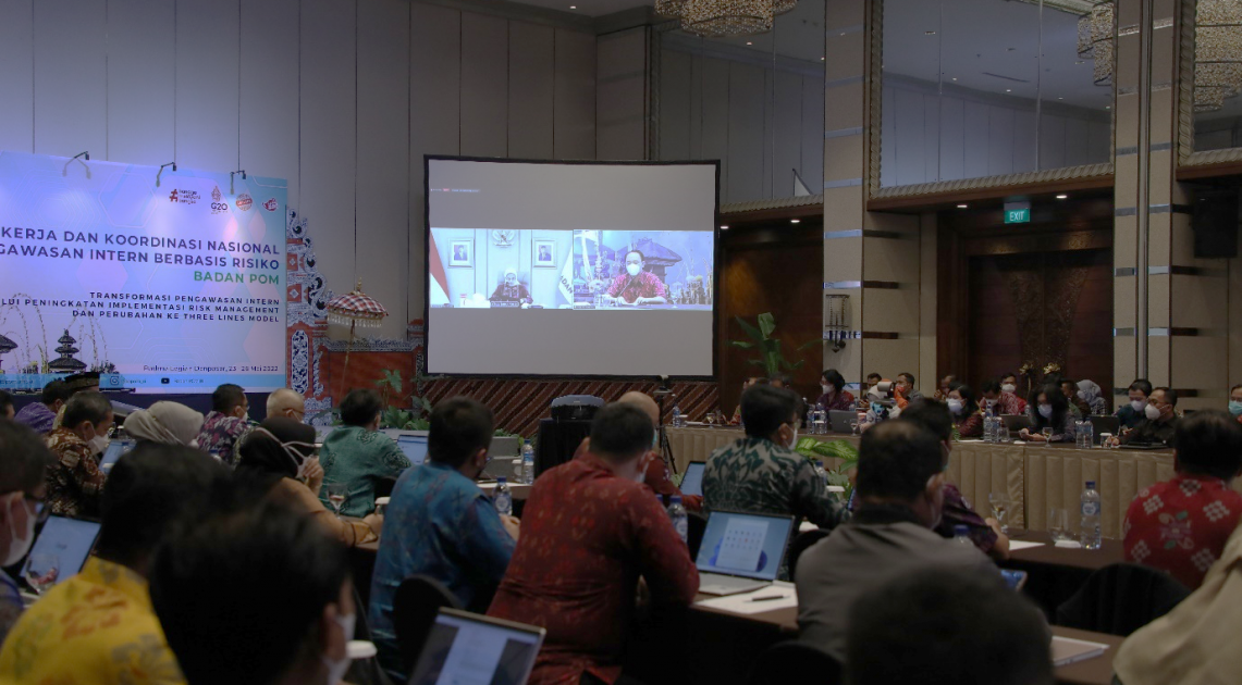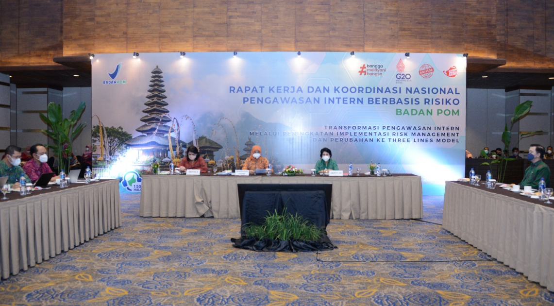 Denpasar – Badan POM menggelar “Rapat Kerja dan Koordinasi Nasional Pengawasan Intern Berbasis Risiko di lingkungan Badan POM” selama 2 hari, yaitu pada tanggal 24 Mei 2022 hingga 25 Mei 2022. Rapat yang dilakukan secara hybrid ini mengangkat tema “Transformasi Pengawasan Intern melalui Peningkatan Implementasi Risk Management dan Perubahan ke Three Lines Model”.