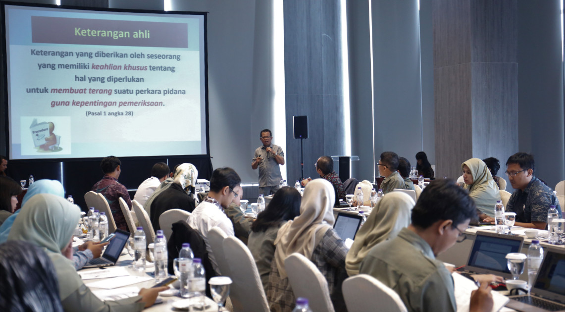Acara dibuka oleh Sekretaris Utama Elin Herlina. Dalam arahannya beliau menerangkan bahwa tujuan pemberian keterangan ahli yaitu memberikan justifikasi terhadap tindakan penyidikan dan penuntutan serta menyakinkan hakim dalam menjatuhkan putusan. “Setiap pernyataan yang kita berikan akan mempengaruhi keputusan hakim”, ujar Elin Herlina.