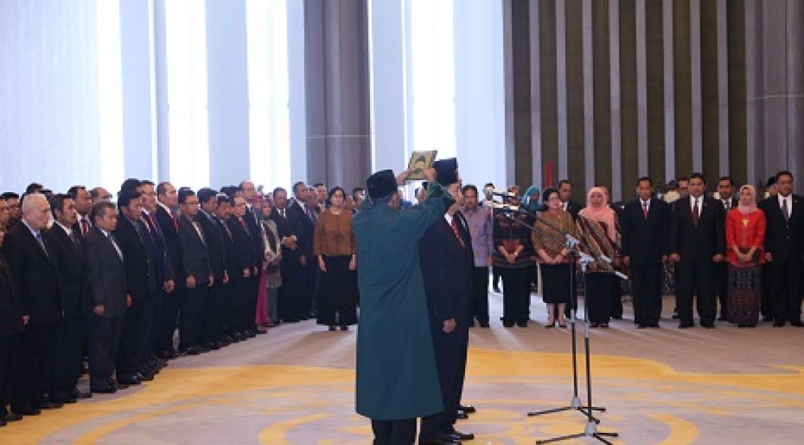 Pengucapan sumpah jabatan dipandu oleh Ketua Mahkamah Agung, Prof. M. Hatta Ali. Keduanya terpilih secara aklamasi sebagai Ketua dan Wakil Ketua BPK dalam Sidang Anggota BPK pada Jum’at (21/04).