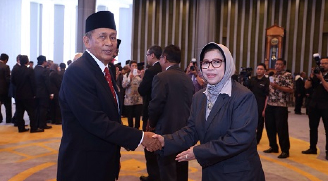 JAKARTA – Badan Pemeriksa Keuangan (BPK) menggelar Sumpah Jabatan Ketua dan Wakil Ketua BPK di Gedung Mahkamah Agung (26/04). Sekretaris Utama Badan POM, Reri Indriani bersama sejumlah Pimpinan Tinggi Kementerian / Lembaga memberikan ucapan selamat kepada Ketua BPK, Moermahadi Soerja Djanegara dan Wakil Ketua BPK, Prof. Bahrullah Akbar usai sumpah jabatan tersebut.