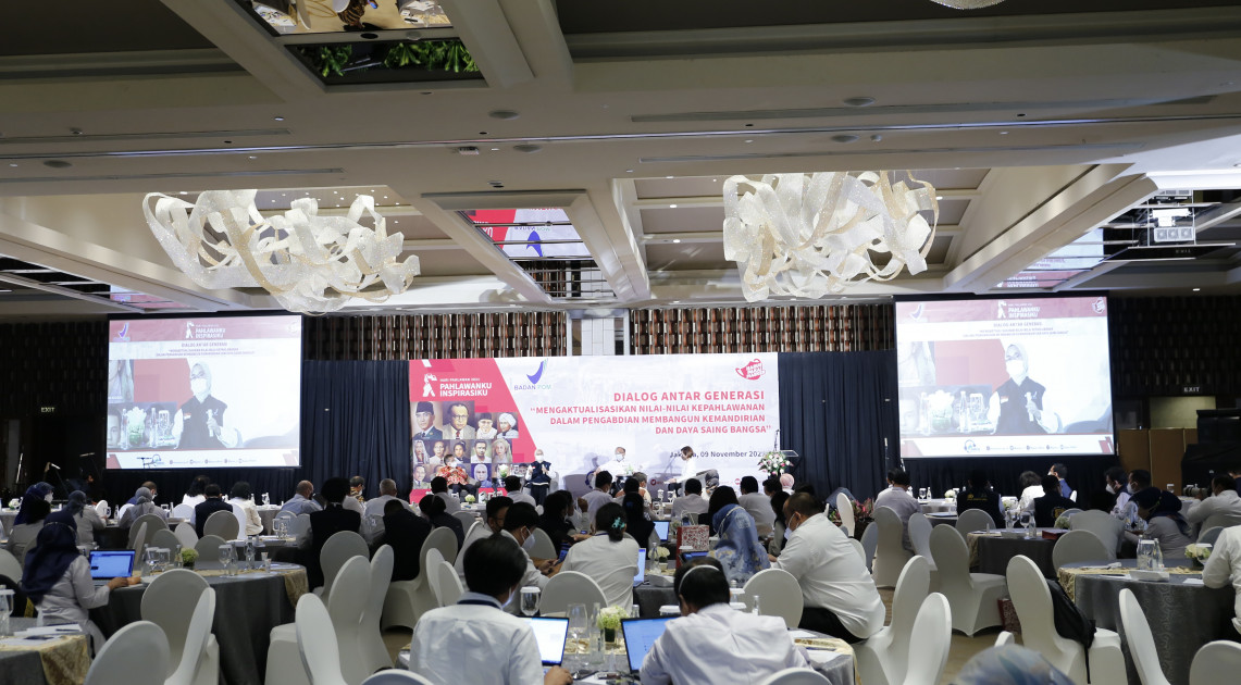 Jakarta – Badan POM menyelenggarakan Dialog Antar Generasi dengan tema “Mengaktualisasikan Nilai-Nilai Kepahlawanan dalam Pengabdian Membangun Kemandirian dan Daya Saing Bangsa”, Selasa (09/11). Kegiatan yang diikuti oleh pegawai Badan POM di seluruh Indonesia dan diselenggarakan hybrid secara offline dan online, merupakan bagian dari momen peringatan Hari Pahlawan pada tahun ini. Narasumber yang dihadirkan, antara lain Kepala Badan POM RI, Penny K. Lukito; Anggota Dewan Pertimbangan Presiden, Sidarto Danusubroto; Cendekiawan Kenegaraan dan Kebangsaan, Yudhi Latief; dan dipandu oleh Tenaga Ahli Komunikasi Kantor Staf Presiden, Prita Laura.