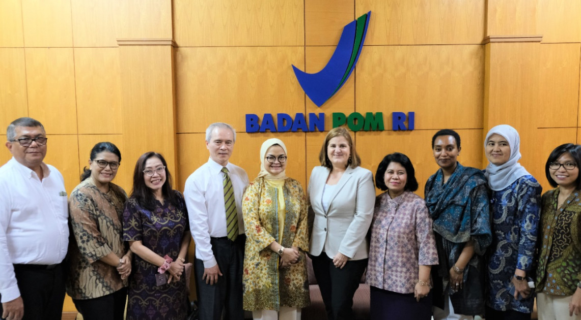 Jakarta - “Badan POM menyambut baik komitmen United States of Pharmacopeia (USP) untuk terus menjadi mitra kerja peningkatan fungsi regulatori Badan POM sebagai Otoritas Regulator Obat Nasional,” demikian disampaikan Kepala Badan POM RI, Penny K. Lukito saat menerima kunjungan Ms. Gersande Chavez (Vice President-Partnership and Growth, USP Headquarter di Jakarta) di kantor Badan POM, Jumat (24/01).