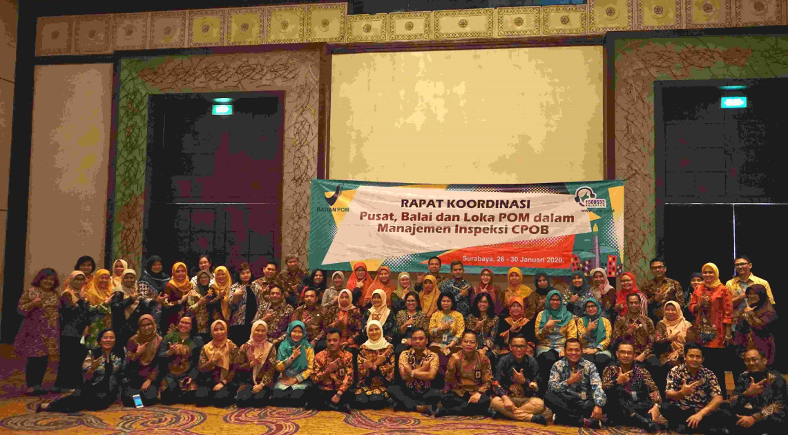 Surabaya - Sebagai bagian dari komitmen Badan POM untuk senantiasa memperkuat sinergi dan koordinasi pusat dan daerah, Direktorat Pengawasan Produksi Obat, Narkotika, Psikotropika dan Prekursor secara berkelanjutan menyelenggarakan Rapat Koordinasi Pusat, Balai dan Loka POM dalam Kajian Manajemen Inspeksi Cara Produksi Obat yang Baik (CPOB) di Surabaya, Selasa (28/01). Pertemuan ini dihadiri oleh Kepala Balai Besar/Balai POM (BBPOM/BPOM) dan Loka POM yang di wilayahnya terdapat industri farmasi, Kepala BBPOM/BPOM dan Loka POM yang di wilayahnya terdapat Unit Transfusi Darah (UTD) yang tersertifikasi CPOB, serta perwakilan Inspektur CPOB seluruh Indonesia.