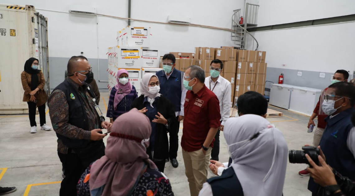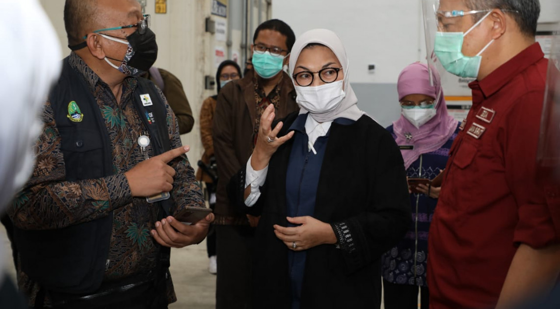 Mengawal proses distribusi dari hulu ke hilir, Kepala Badan POM RI, Penny K. Lukito meninjau langsung kesiapan distribusi vaksin ke Instalasi Farmasi Pemerintah (IFP) di Bandung antara lain IFP Provinsi Jawa Barat, IFP Kabupaten Bandung dan Puskesmas Kutawaringin, Jumat (29/01).