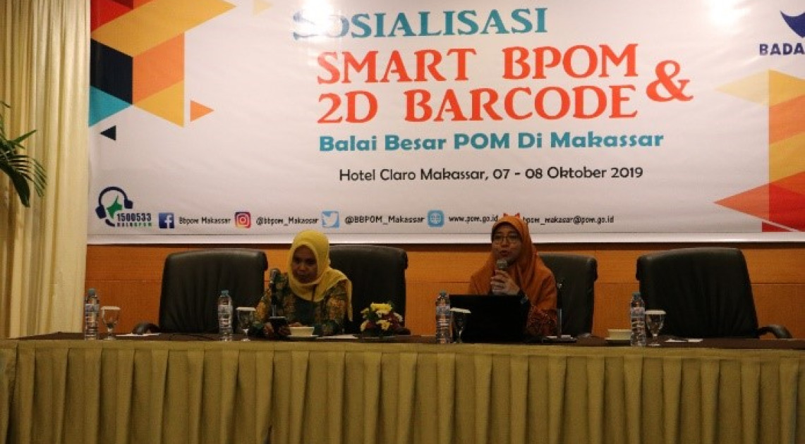 Berkolaborasi antara Badan POM pusat dengan Balai Besar POM di Makassar, diadakanlah sosialisasi 2d Barcode dan Aplikasi Smart POM pada tanggal 07-08 Oktober 2019 di Kota Makassar. Sosialisasi ini dihadiri oleh 350 peserta dari perwakilan Dinas Koperasi dan UMKM Provinsi Sulawesi Selatan, Ikatan Apoteker Indonesia, Kader Pengawas Obat dan Makanan, Pramuka, Fakultas Farmasi, Pedagang Besar Farmasi, Rumah Sakit, Puskesmas, Apotek, serta UPT Badan POM (Makassar, Manado, Ambon, Jayapura, Maluku, Kendari, Palu, Palopo dan Mamuju).