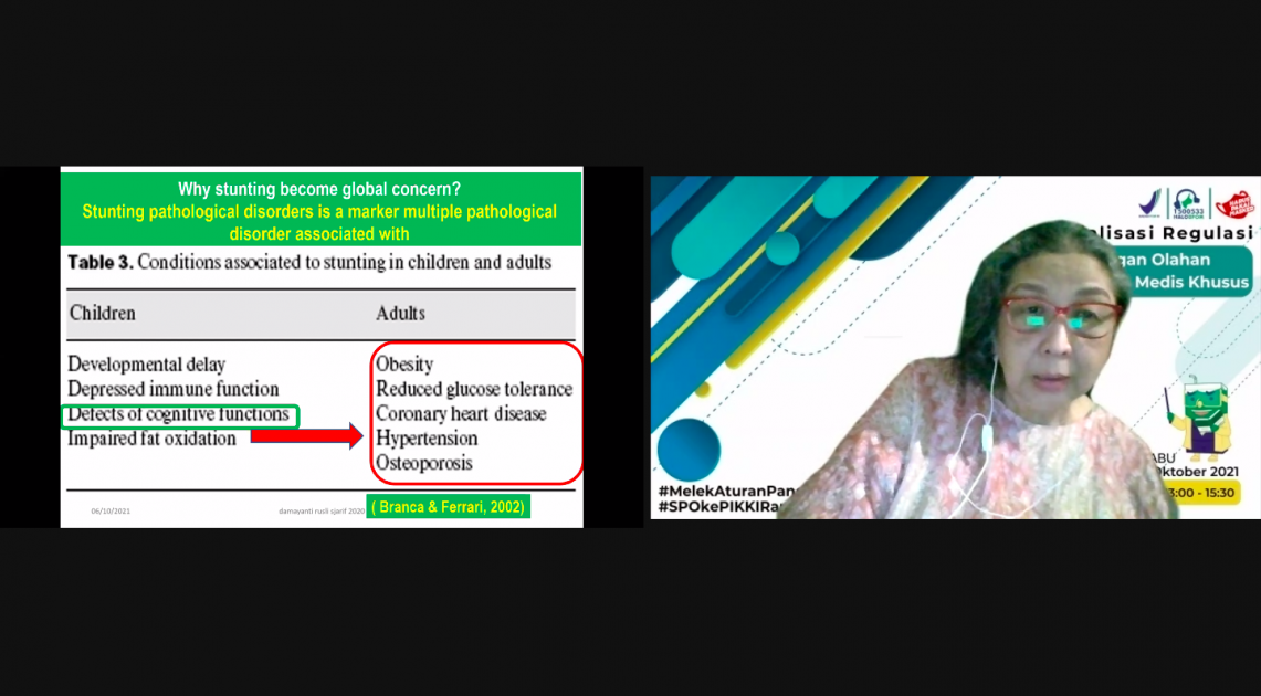 Sementara itu, Prof. Damayanti menyampaikan terkait pentingnya PKMK, terutama dalam menangani stunting pada anak. Salah satu contohnya, terdapat kasus anak yang tidak mengonsumsi Air Susu Ibu (ASI) akibat alergi tertentu, maka PKMK diperlukan sebagai pengganti nutrisi. Namun, orang tua diiimbau untuk tidak melakukan diagnosis sendiri serta perlu berkonsultasi dan memperoleh pengawasan dari dokter dalam pemberian PKMK tersebut.