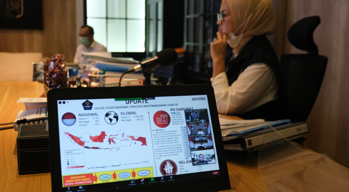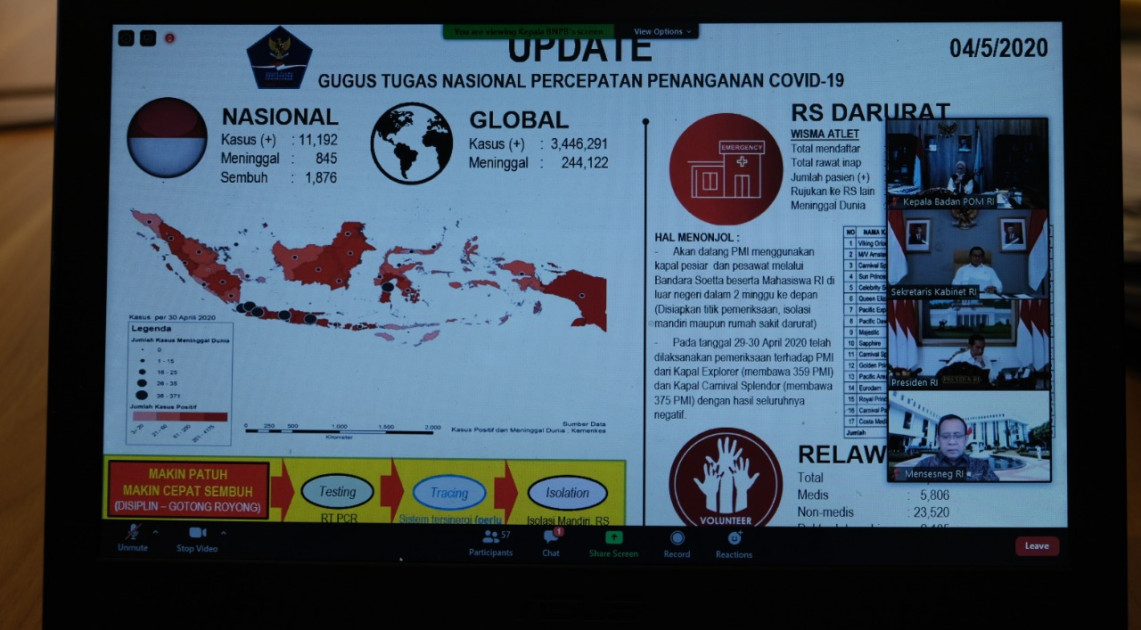 Jakarta – Sebagai bagian dalam Tim Gugus Tugas Percepatan Penanganan COVID-19, Badan POM berperan aktif dalam penanganan COVID-19. Untuk memperoleh informasi dan arahan terbaru terkait penanganan COVID-19, Kepala Badan POM RI, Penny K. Lukito kembali mengikuti rapat terbatas (ratas) bersama Bapak Presiden RI, Ketua Tim Gugus Tugas Percepatan Penanganan COVID-19, dan anggota tim lainnya melalui teleconference di kantor Badan POM, Senin (04/05).