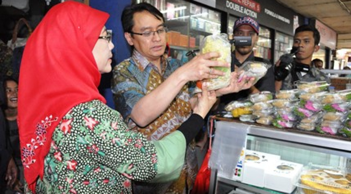 Suasana lobby Pasar Tebet Barat Jumat sore, 26 Juni 2015 tampak sedikit berbeda. Ada meja yang memajang berbagai sampel makanan sebelum pintu masuk pasar. Rata-rata pengunjung pasar berhenti sejenak untuk melihat makanan yang dipajang. Bahkan tak jarang mereka menghabiskan waktu beberapa menit untuk mengamati makanan tersebut. "Yang ini adalah contoh makanan mengandung pewarna tekstil Bu, biasanya warnanya cerah dan mencolok. Kalau yang ini mengandung formalin", jelas salah seorang petugas Balai Besar POM (BBPOM) di Jakarta.