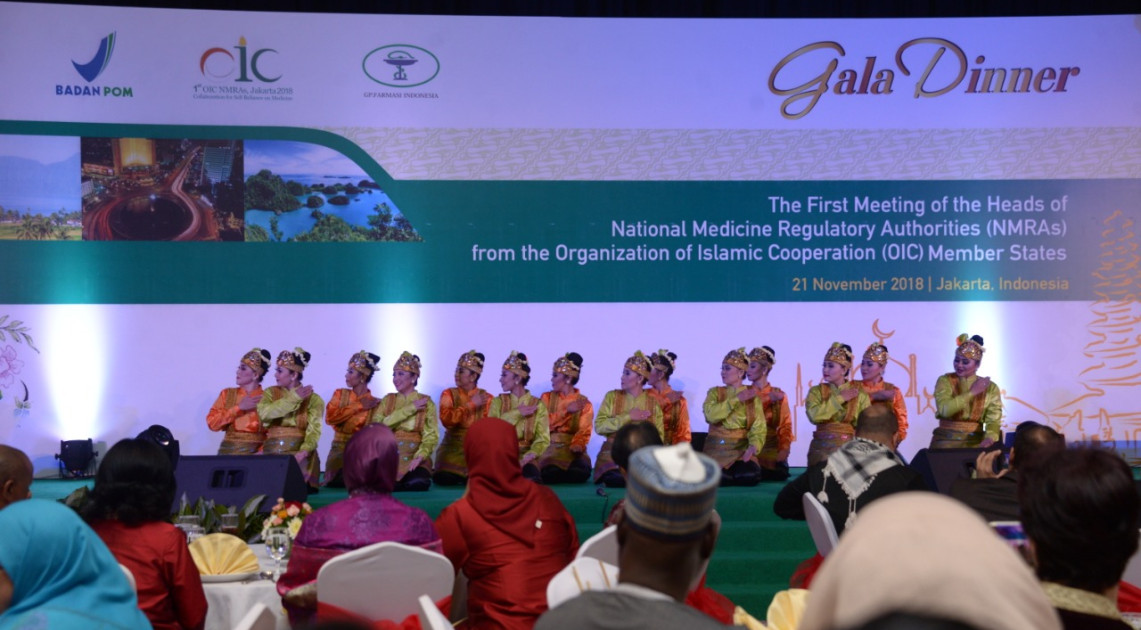 Jakarta – The 1st Meeting of the Heads of National Medicine Regulatory Authorities (NMRAs) from the Organization of Islamic Cooperation (OIC) Member States baru saja dimulai pagi ini di Jakarta. Kepala BPOM RI, Penny K. Lukito memberikan sambutan hangat kepada para tamu delegasi negara anggota Organisasi Kerjasama Islam (OKI) dalam Jamuan Makan Malam. Para tamu diajak menikmati budaya nusantara dalam suasana santai dan penuh keakraban di salah satu hotel ibukota, (21/11).