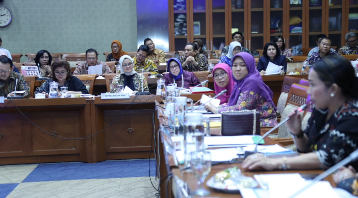 Jakarta - Badan POM menghadiri Rapat Dengar Pendapat (RDP) dengan jajaran Komisi IX DPR RI periode 2019-2024, Selasa (05/11). Bersama Kementerian Kesehatan, Badan Kependudukan dan Keluarga Berencana Nasional (BKKBN), Dewan Jaminan Sosial Nasional (DJSN) serta Badan Penyelenggara Jaminan Sosial (BPJS), Kepala Badan POM RI, Penny K. Lukito menyampaikan Visi Misi Presiden RI di Bidang Pengawasan Obat dan Makanan. Tak hanya penyampaian Visi Misi, pertemuan ini juga menjadi ajang perkenalan dan silaturahmi dengan Ketua, Wakil Ketua, serta jajaran Anggota Komisi IX yang telah terpilih melalui pesta demokrasi kemarin.